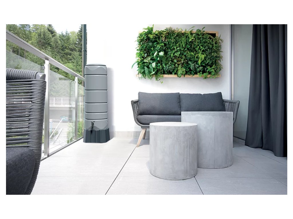 Sud na dešťovou vodu, objem 110 l, kvalitní PE materiál, odolnost vůči mrazu, možnost připojení ke střešnímu žlabu, připojení ze stran pro snadnou montáž kohoutku (součástí balení), stylový design.