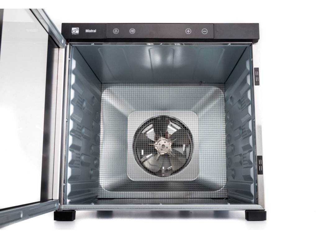 Řídící jednotka sušičky G21 Mistral má dokonale řešenou elektroniku, ovládání je intuitivní a snadné. Časovač hlídá dobu přípravy a po skončení sušení sušičku sám vypne. Regulátor teploty vám dává absolutní kontrolu nad sušícím procesem. Usušte si to, co chcete, přesně tak, jak to chcete.
