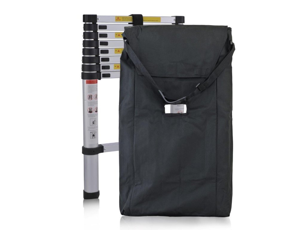 Její pohodlný trak je opatřen nárameníkem, díky kterému se váha žebříku rozloží na větší plochu a manipulace s ním tak bude mnohem jednodušší. Uprostřed tašky na teleskopický žebřík je otvor pro rychlé a pohodlné uchopení žebříku.