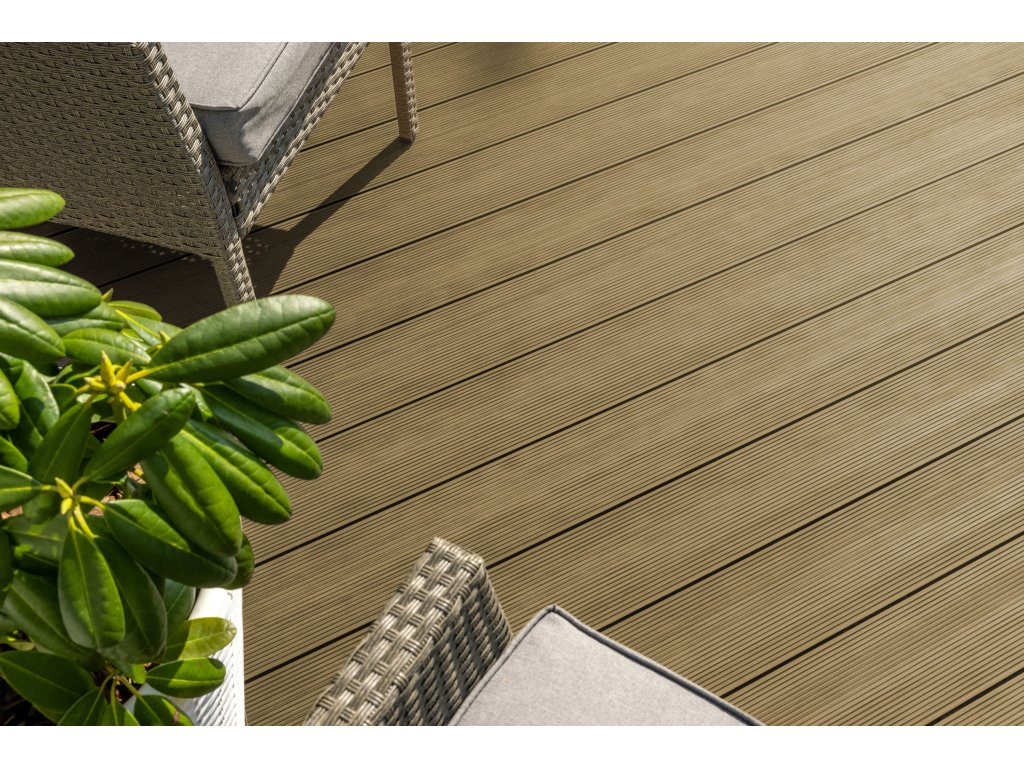 Materiál WPC (Wood plastic components) je směs tvořená z 60 % z dřevitých vláken a ze 40 % z plastu. S pomocí vlivu tlaku a teploty (extrudace) vzniká odolný a bezúdržbový materiál, který je praktický a po všech stránkách vysoce užitkový.