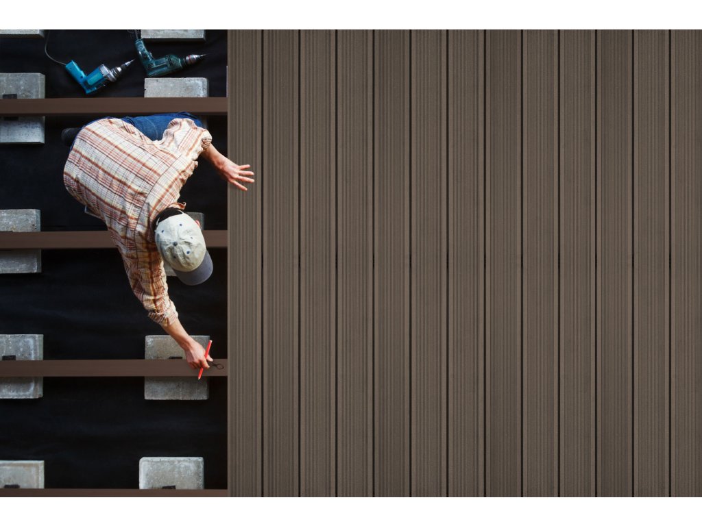 Materiál WPC (Wood plastic components) je směs tvořená z 60 % z dřevitých vláken a ze 40 % z plastu. S pomocí vlivu tlaku a teploty (extrudace) vzniká odolný a bezúdržbový materiál, který je praktický a po všech stránkách vysoce užitkový.