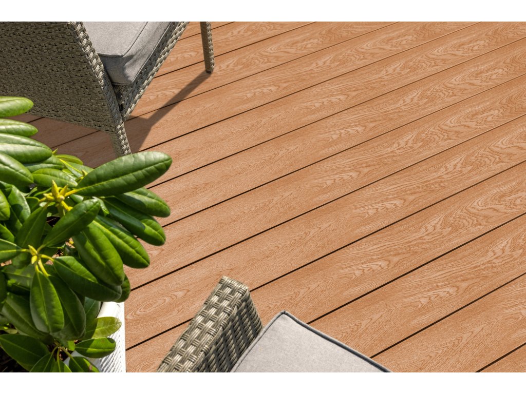 Materiál WPC (Wood plastic components) je směs tvořená z 60 % z dřevitých vláken a ze 40 % z plastu. S pomocí vlivu tlaku a teploty (extrudace) vzniká odolný a bezúdržbový materiál, který je praktický a po všech stránkách vysoce užitkový.