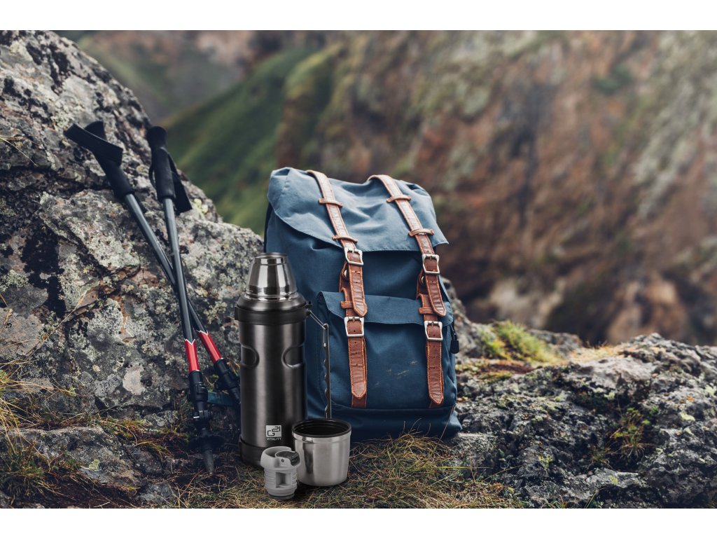 Termoska G21 na pití, 1000 ml, ocelově šedá s rukojetí