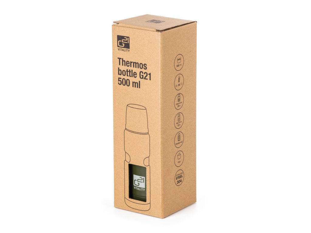 Největší předností termosky G21 je kvalitní termoizolace. Termoláhev z nerezové oceli má dvojité stěny a dokonale těsnící víčko s vnějším krytem. Nápoje tak udrží v požadované teplotě opravdu dlouho – horké až 12 hodin, studené až 24 hodin.
