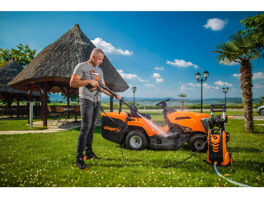 Výkonná elektrická tlaková myčka VILLAGER 165 bar, 2100 W je ideálním řešením pro odstraňování nečistot kolem domu či dílny. Rychle a snadno vyčistíte kolo, zahradní nábytek, plot, terasu, auto, zahradní techniku, příjezdovou cestu, kamennou zídku, fasádu nebo bazén. Extrémně flexibilní, rychle se montuje a vyčistí i ty nejtrvalejší nečistoty.