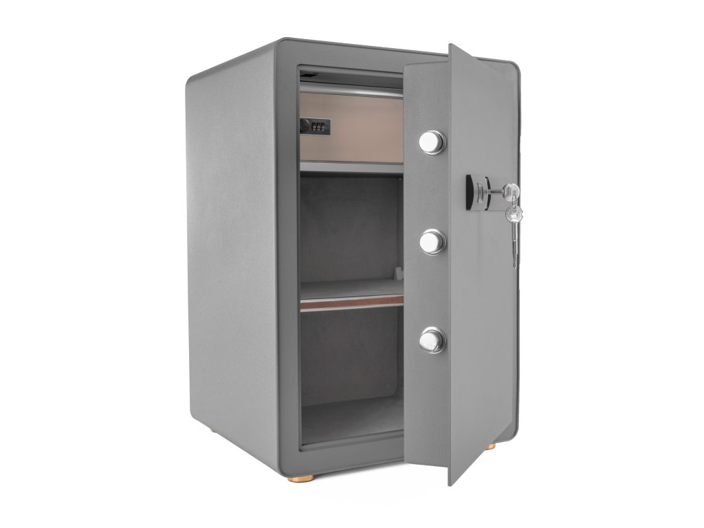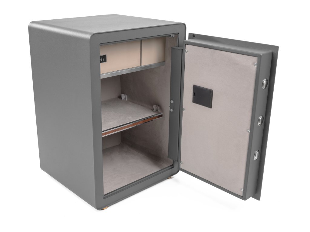Do trezoru G21 jsme přidali odnímatelnou polici, díky které si vnitřní prostor snadno přizpůsobíte podle aktuálních potřeb. Navíc jsme na horní stranu trezoru zabudovali praktickou vnitřní přihrádku, která je uzamykatelná samostatným číselným zámkem a nabízí další úroveň zabezpečení k hlavnímu prostoru. Bez ohledu na to, zda do trezoru chcete uložit doklady, šperky nebo cennou techniku, vždy budete mít dostatek místa. K dispozici máte 51,6 litru úložného prostoru.