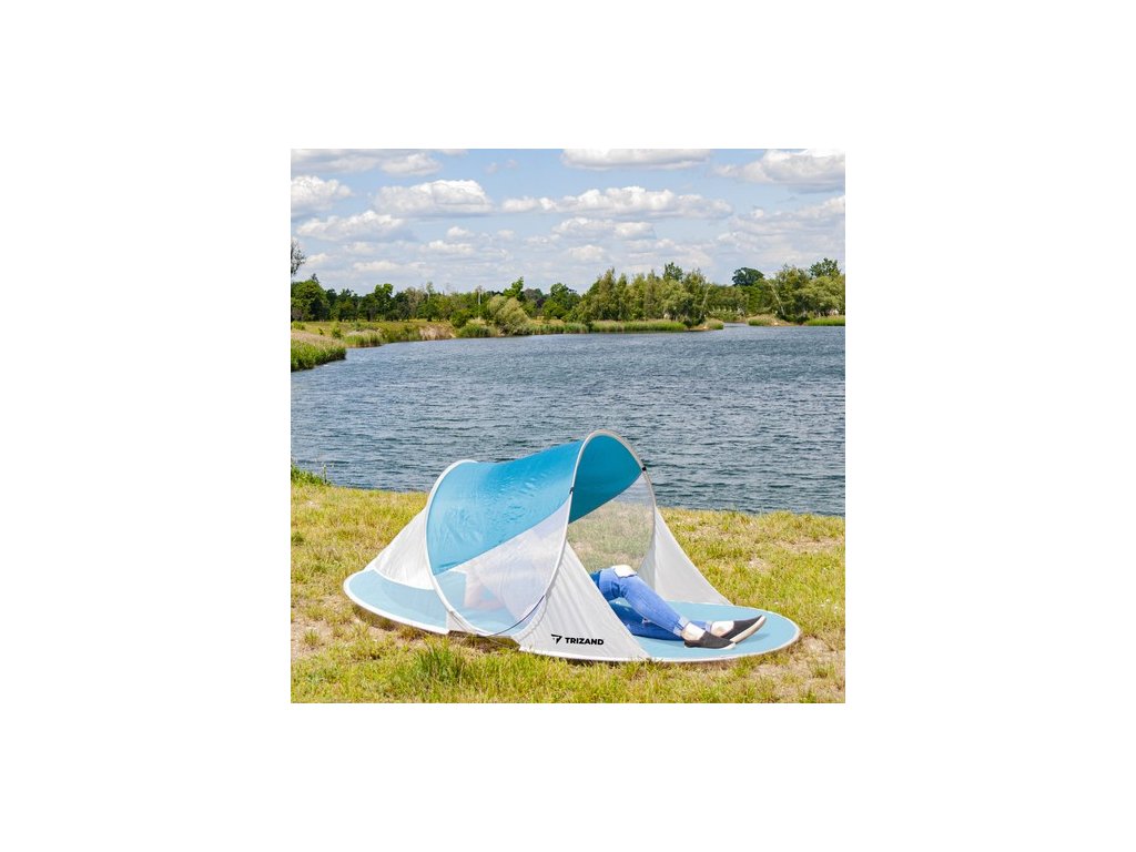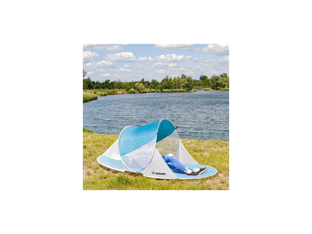 Lehký a samorozkládací plážový stan TRIZAND 20974 nabízí skvělé podmínky pro relaxaci na pláži, zahradě nebo v parku. Díky větraným bočním stěnám a zadní části z moskytiéry je ideální i v horkých dnech a chrání před hmyzem. Kombinuje výhody zástěny a deštníku v praktickém balení.