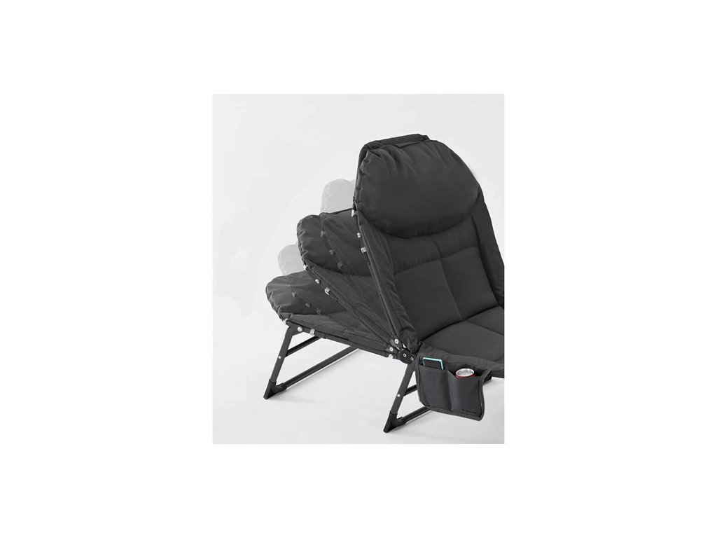 Skládací cestovní postel s pohodlnou matrací, odolným rámem a nastavitelnou opěrkou hlavy je ideálním řešením pro kempování, relaxaci na zahradě i domácí použití.