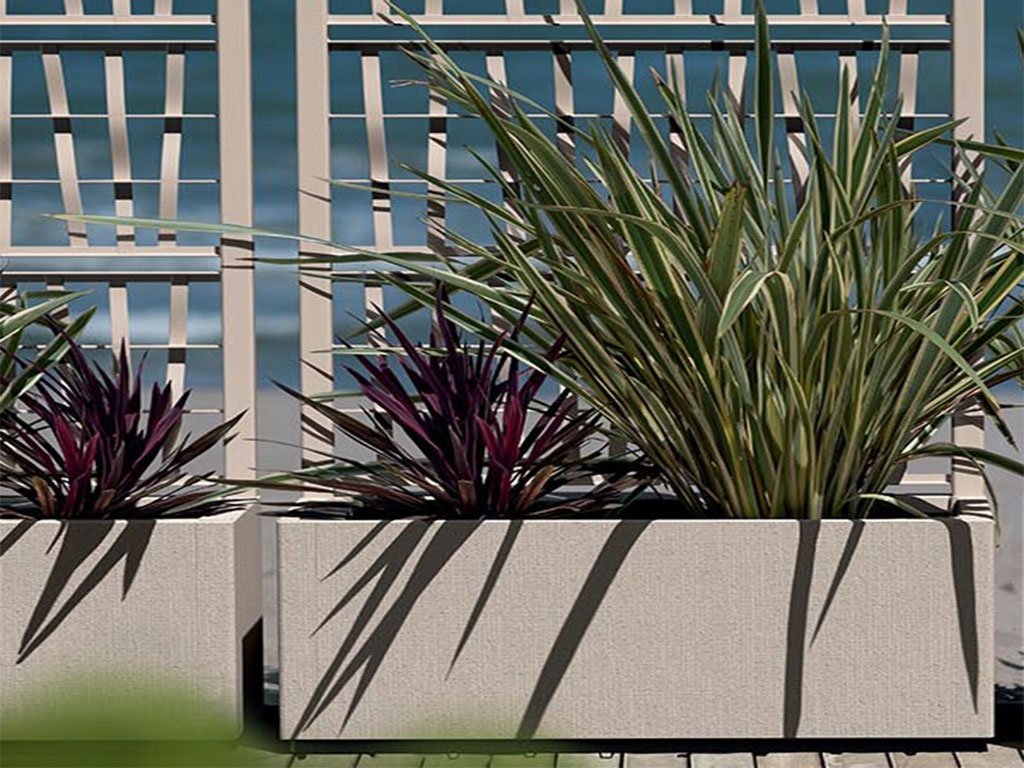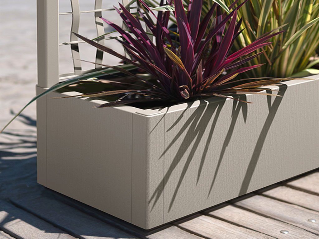 Truhlík s mřížkou, drenážním dnem, pro venkovní použití, z polypropylenu, barva krémově bílá, o objemu 80l, rozměry 80x36x142cm.