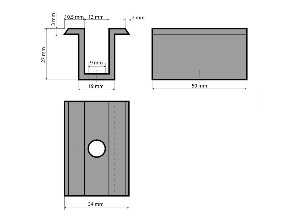 Úchyt je důležitým montážním prvkem pro instalaci solárních panelů a používá se k upevnění panelu k hliníkovému profilu. Je z odolného eloxovaného hliníku č. 6063 o rozměrech 3,5 x 3 x 5 cm s otvorem M8.