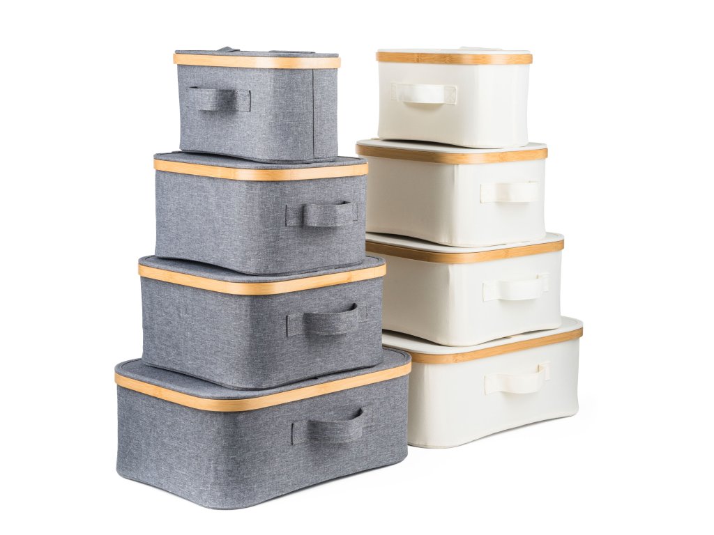 Podívejte se na skvělé vlastnosti úložného boxu s bambusovou výztuhou, látkovým madlem a odepínacím víkem. Box využijete samostatně nebo jako doplněk bambusových regálů a polic G21.