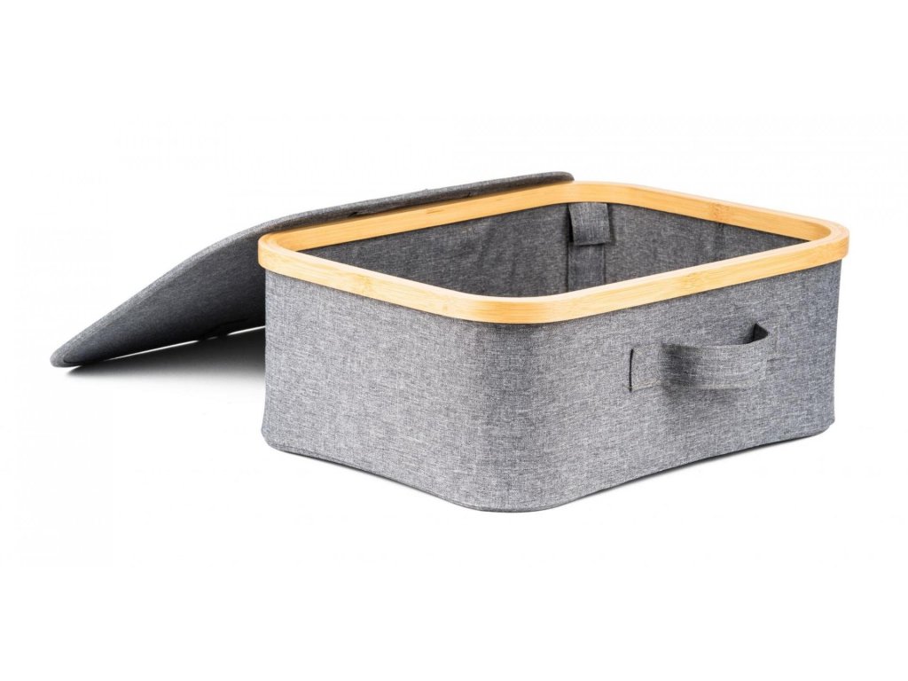 Úložný box G21 40 x 30 x 15 cm, bambusový s víkem, šedý