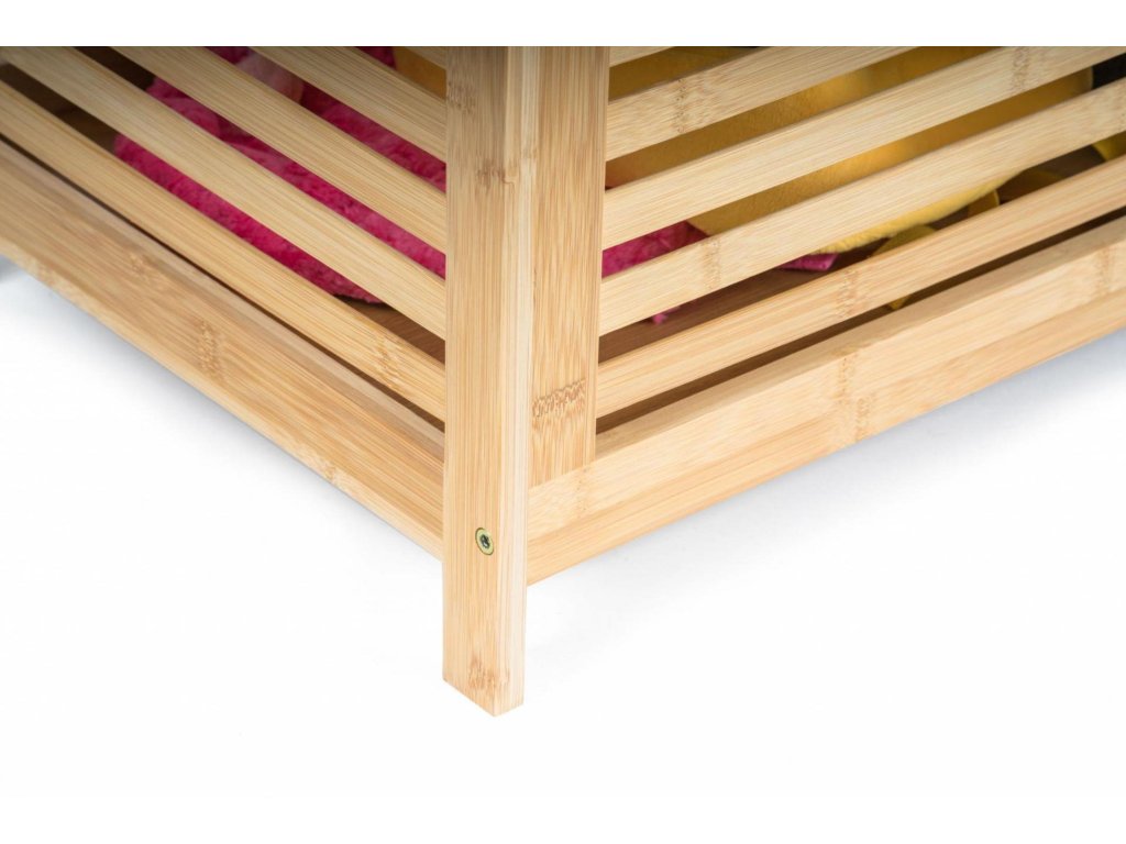 Bambus je překvapivě lehký, takže s boxem můžete snadno manipulovat. Zároveň je ale dostatečně pevný, takže unese i větší zátěž. Jednou z výborných vlastností bambusového dřeva je navíc jeho velká odolnost vůči vlhkosti a přirozená odolnost vůči bakteriím a plísním, takže se nemusíte obávat jeho umístění v koupelně nebo prádelně.