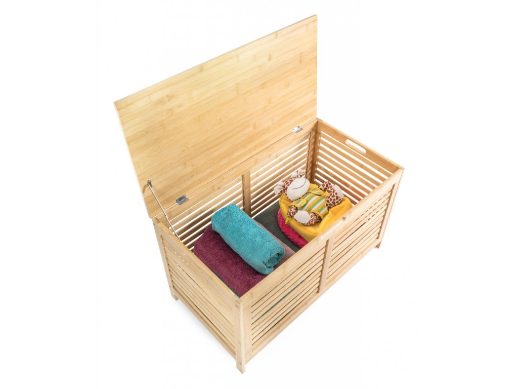 Tento bambusový box je skvělým doplňkem do ložnice, dětského i obývacího pokoje nebo předsíně. Nabízí úložný prostor o vnitřní nosnosti 10 kg pro uložení dek, polštářů nebo sezónního oblečení, děti do něj mohou uklízet oblíbené hračky, v předsíni zas uschová sezónní doplňky, deštníky a podobně.
