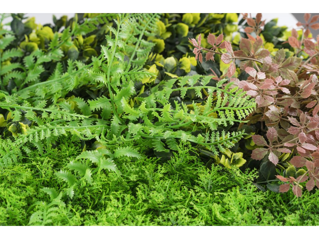 Jeden panel, spousta možností. Použijte jej jako zajímavý interiérový doplněk, vytvořte zelenou stěnu v obýváku, přírodní zákoutí na balkoně, nebo zakryjte starý plot. Panely o rozměrech 50 x 50 cm snadno zkombinujete do větších celků díky modulovému systému rastrů a příchytek na zadní straně každého panelu. Zvládnete to bez vrtání a nářadí, stačí zip páska nebo obyčejné háčky. Ať už panely připevníte na betonovou zeď, dřevěné obložení nebo sádrokarton, výsledek bude vždy perfektní. A co když potřebujete menší rozměr? Pak panel jednoduše zastřihnete a natvarujete podle potřeby.