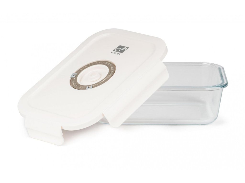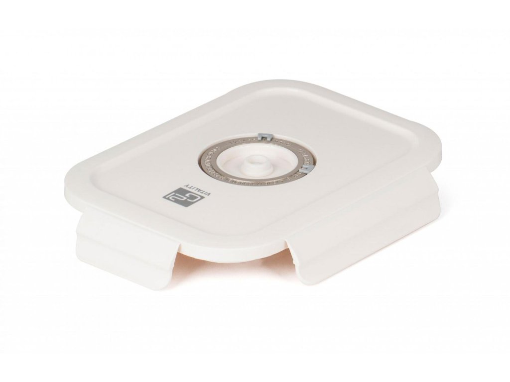 Plastové víko je vybaveno vakuovacím ventilem a praktickým nastavováním data. Budete tak vědět, kdy byly potraviny vakuovány nebo do kdy se mají spotřebovat. Ventil uprostřed víka lze jemně zmáčknout pro snadné uvolnění vakua.