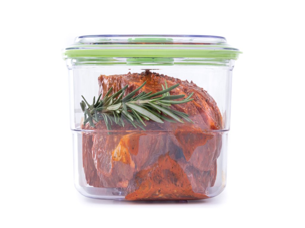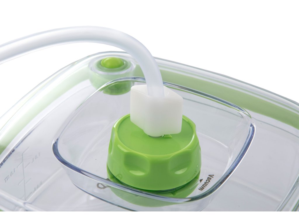 Vakuovací dóza G21 pro marinování a prodloužení trvanlivosti potravin má praktický čtvercový tvar, takže je dobře skladovatelná. Vyrobili jsme ji ze zdravotně nezávadného BPA Free plastu s vysokou odolností a stálostí. Důležité je i víko s otvorem pro vakuování, které skvěle těsní a zabrání tak přístupu vzduchu k zavakuovaným surovinám.