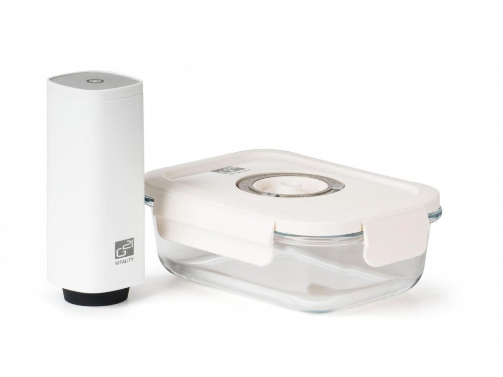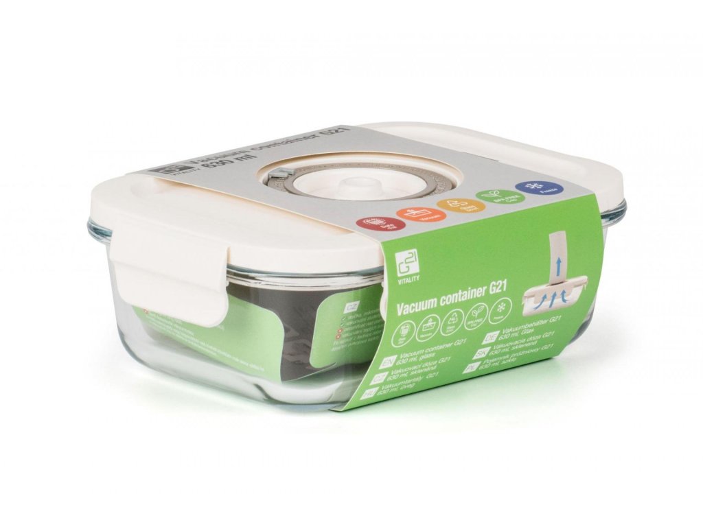 Pro pohodlné a snadné vakuování čerstvých i hotových potravin doporučujeme vynikající vakuovací dózu G21 s objemem 630 ml. Prodlouží trvanlivost potravin, zachová jim čerstvost i plnou chuť a vůni a především všechny zdraví prospěšné látky. Velkou výhodou této dózy je její široké využití – potraviny v ní po zavakuování můžete uložit do ledničky, zamrazit nebo po sundání víka rovnou zapékat v troubě či horkovzdušné fritéze.
