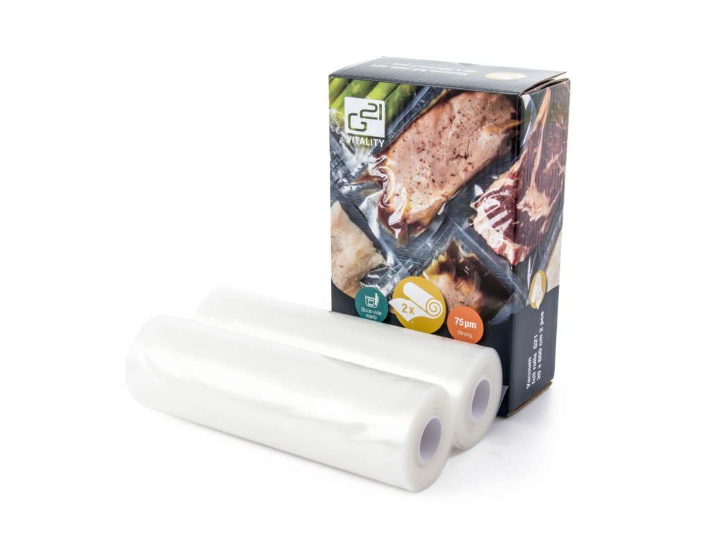 Pevná potravinářská fólie G21 v 6metrové roli o šířce 20 cm je díky své vysoké pevnosti a kvalitnímu provedení vhodná nejen pro prodloužení trvanlivosti potravin vakuováním a jejich uchovávání v ledničce nebo v mrazáku, ale využijete ji i k vakuování surovin pro sous-vide vaření.