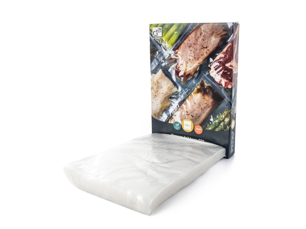 Vakuovací sáčky G21 o rozměrech 28 x 40 cm jsou díky své vysoké pevnosti a kvalitnímu provedení vhodné nejen pro prodloužení trvanlivosti potravin vakuováním a jejich uchovávání v ledničce nebo v mrazáku, ale využijete je i k vakuování surovin pro sous-vide vaření.