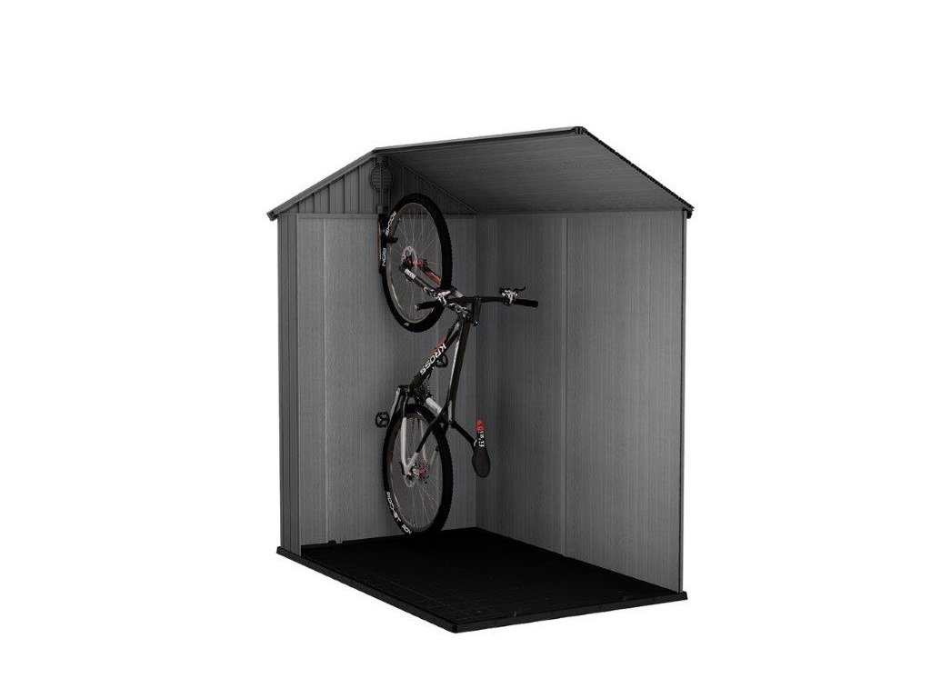 Věšák na kolo do domku Keter (kromě domku Keter Factor), nosnost 18 kg, pozinkovaná ocel, odolnost vůči korozi a vodě, povrch s umělou pryskyřicí.
