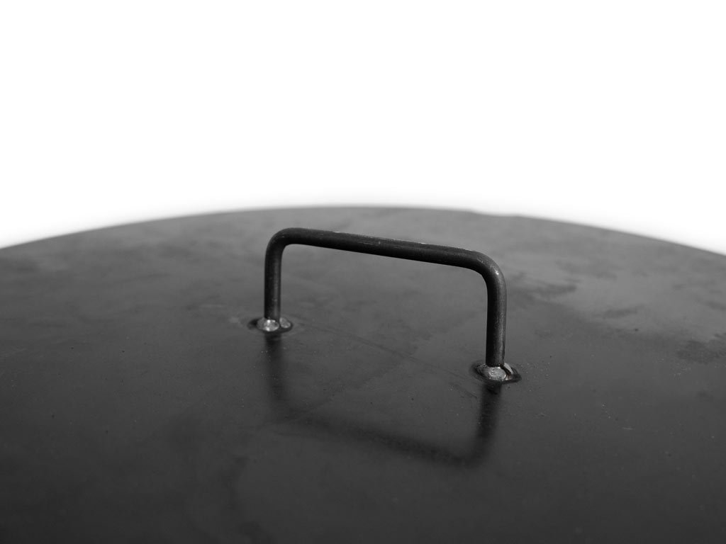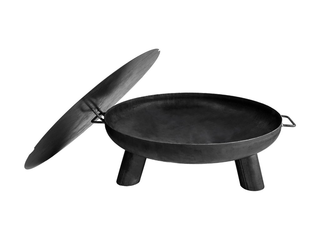 Víko na ohniště s průměrem 100 cm, s vykrojením na nohy ohniště, vyrobeno z černé oceli