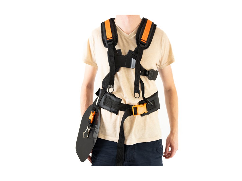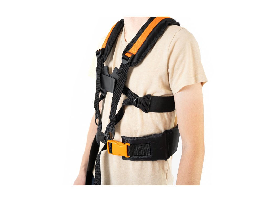 Dvouramenný zádový profesionální popruh ke křovinořezům. Široké popruhy, výztuhy a nastavitelné zapínání, díky kterému lze ramenní popruhy přizpůsobit každé postavě.