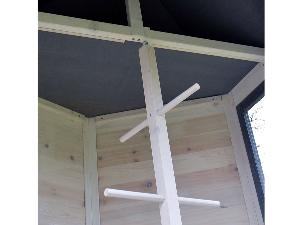 Voliéra s rozměry 100x100x183 cm má dostatek prostoru pro velkého papouška i více menších ptáčků. Je vyrobena z odolného borovicového dřeva, které je navíc chráněno nátěrem v atraktivní bílé barvě a může tak zdobit nejenom Vaši terasu, ale i zahradu. Odolná bitumenová střecha ochrání ptáky před deštěm i sluncem. Uvnitř voliéry se nachází závěsná hrazda dlouhá 115 cm s 5 bidly, které poskytnou ptákům dostatek prostoru pro odpočinek.