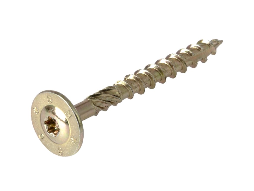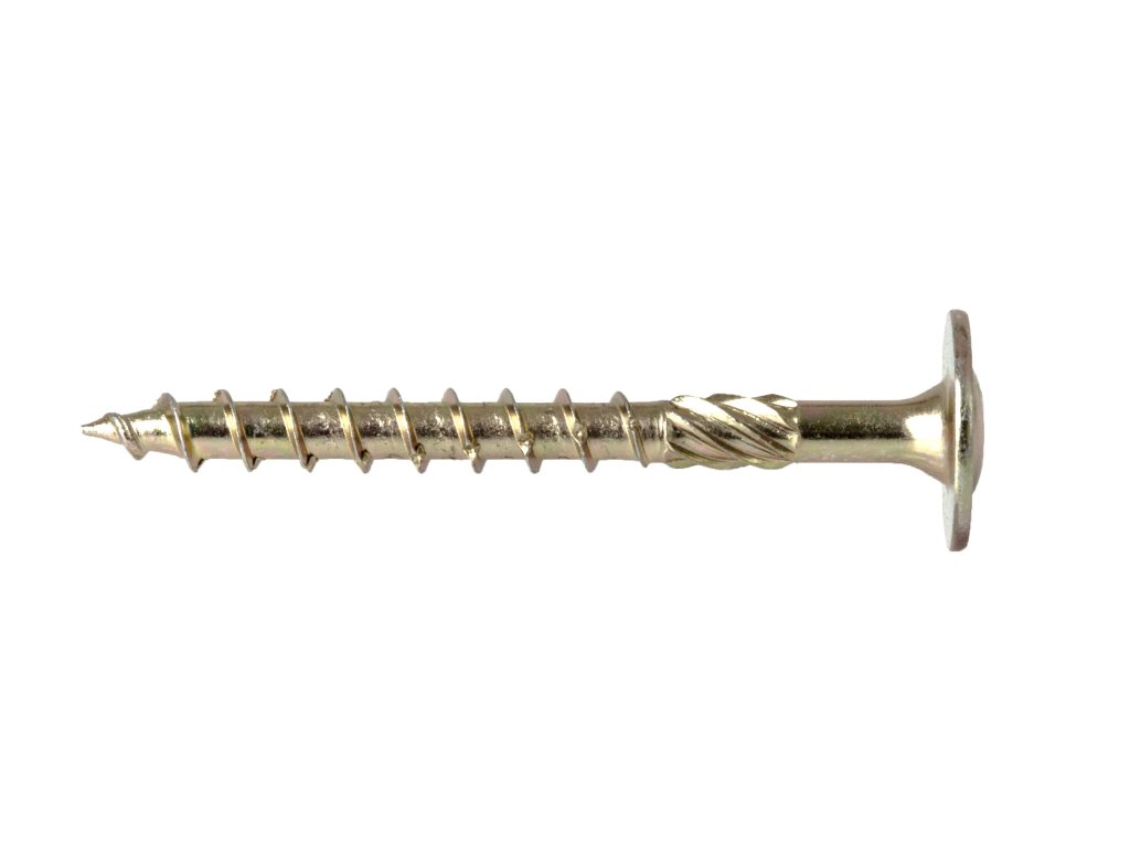 Konstrukční vrut s talířovou hlavou a drážkou Torx se značí vysokou pevností díky použitému materiálu s vyšším obsahem uhlíku a následnému tepelnému zušlechtění. Kluzný lak na povrchu vrutu snižuje tření při zavrtávání do dřeva.
