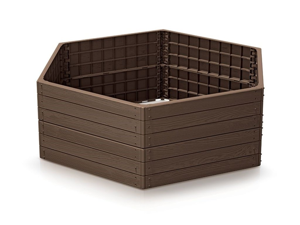 Pokud si pořídíte více těchto záhonů, můžete je stohovat na sebe. Pečujete o zasazené rostliny, aniž byste klečeli na zemi. Struktura vyvýšeného záhonu navíc napodobuje dřevo. Využijete ho tedy i jako dekorativní prvek na zahradu.