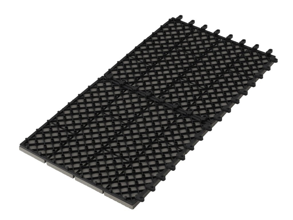 Dlaždice G21 mají velice snadnou a rychlou montáž i demontáž. Jednoduše je spojujete zaklapnutím podkladových nosných umělohmotných konstrukcí sousedních dlaždic. Jejich okraje směřující do volného prostoru poté osadíte přechodovou lištou.