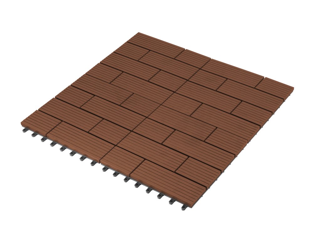 WPC dlaždice G21 Samoa v barvě třešeň jsou součástí komplexního podlahového systému G21 a je vhodné je použít jako exteriérovou podlahovou krytinu. Mají velmi snadnou a rychlou montáž i demontáž. Rozměr dlaždice Samoa je 2,3 x 30 x 30 cm.