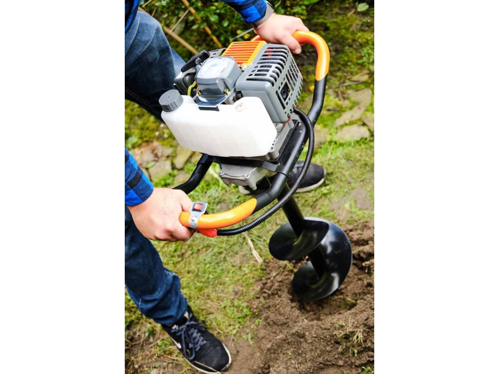 Benzínový zemní vrták je vhodný pro použití při stavebních pracích i na zahradách.