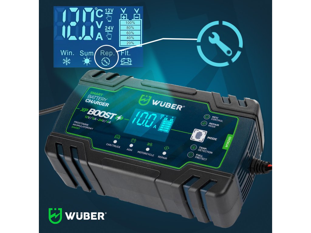 WUBER Mikroprocesorová nabíječka baterií 12-24V W14240
