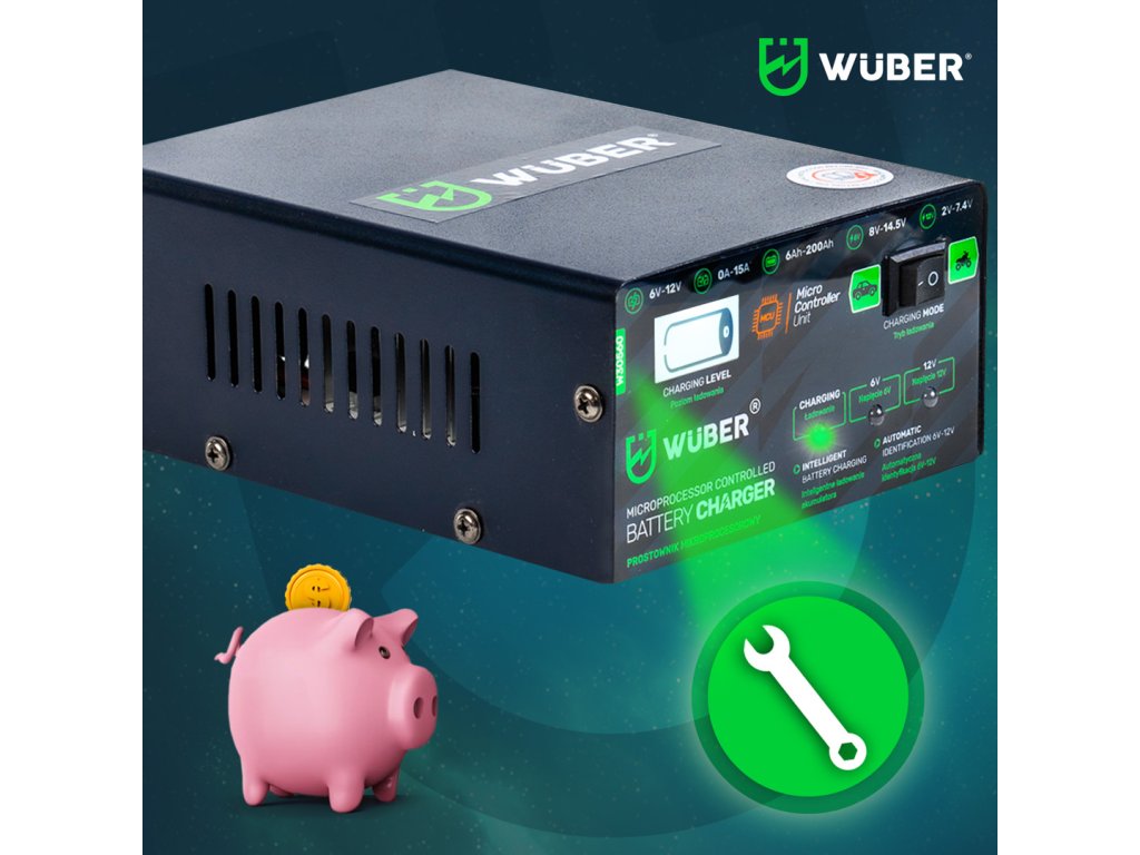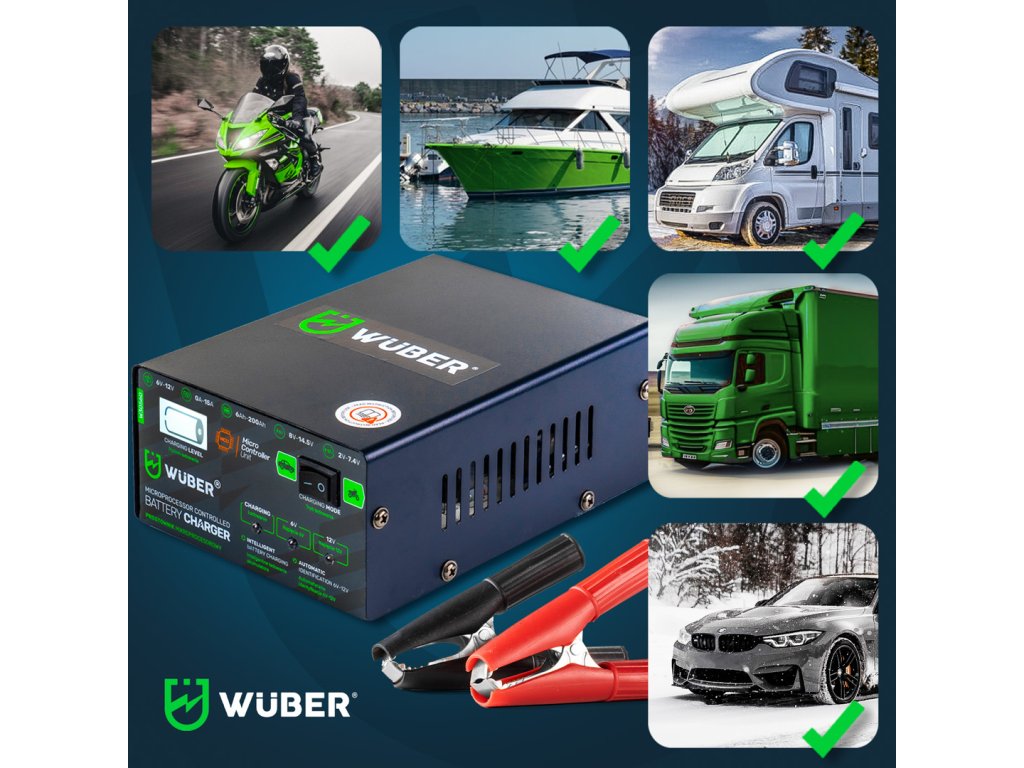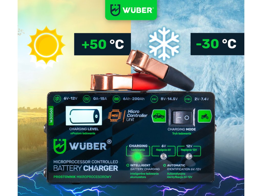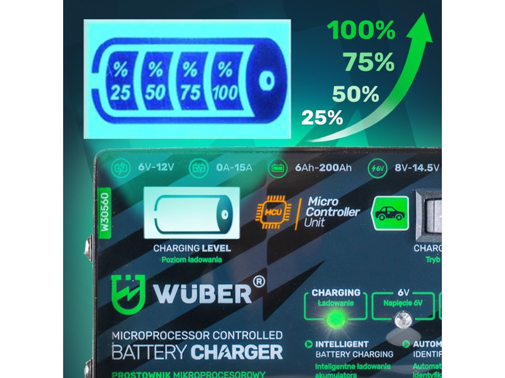 WUBER Mikroprocesorová nabíječka baterií 6-12V 15A W30560