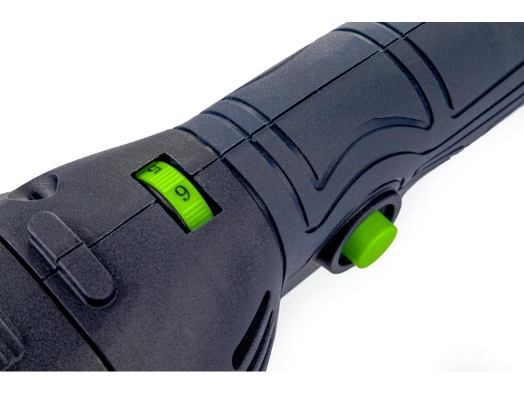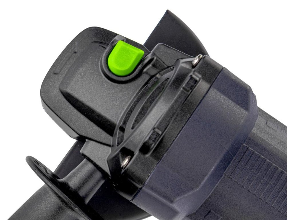 Tato úhlová bruska je navíc vybavena rukojetí, kterou mohou pohodlně používat jak praváci, tak leváci, a spínačem lze aretovat pro trvalý provoz.