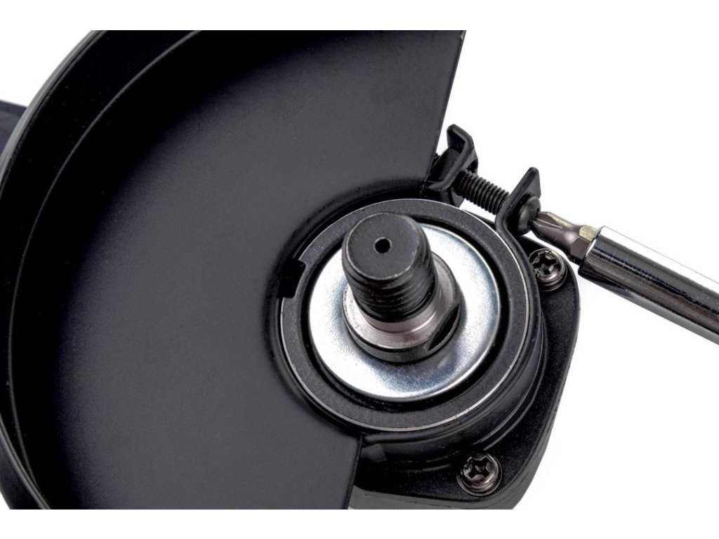 Nastavitelný kryt kotouče je dalším praktickým prvkem, který se přizpůsobí různým úkolům, ať už se jedná o řezání, broušení nebo jiné práce.