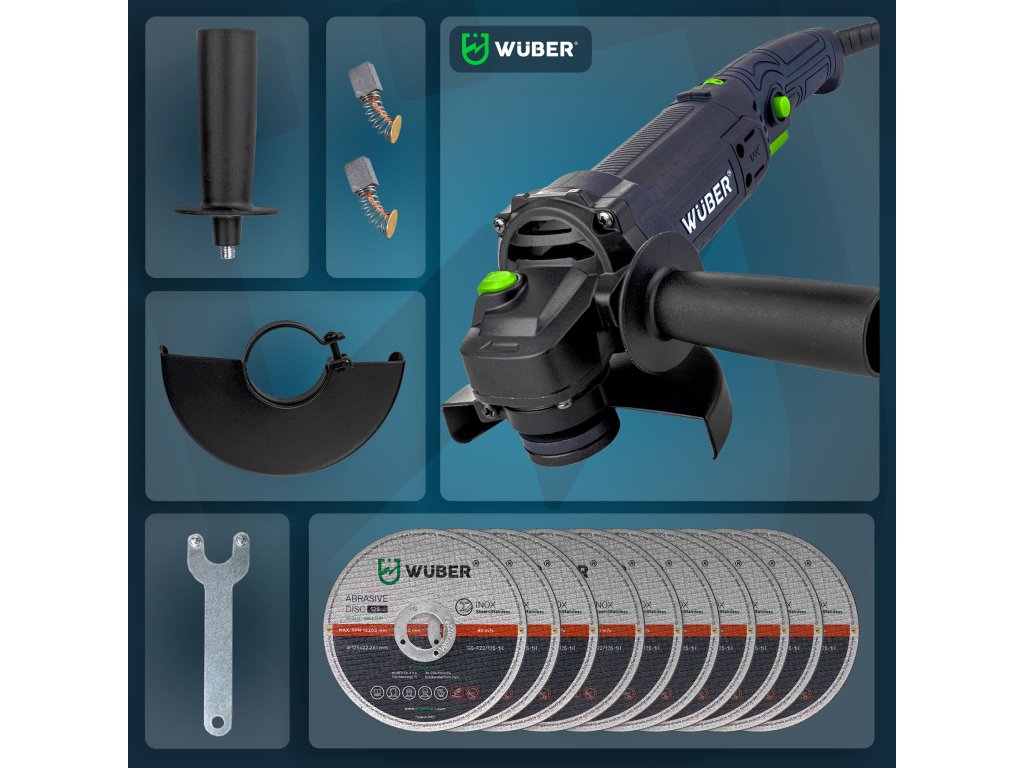 WUBER Úhlová bruska 1600W + 10 kotoučů W27474