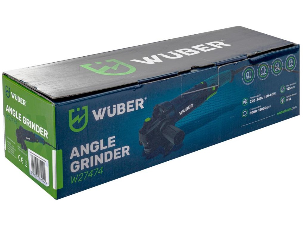 WUBER Úhlová bruska 1600W 125mm + 10 kotoučů W27474