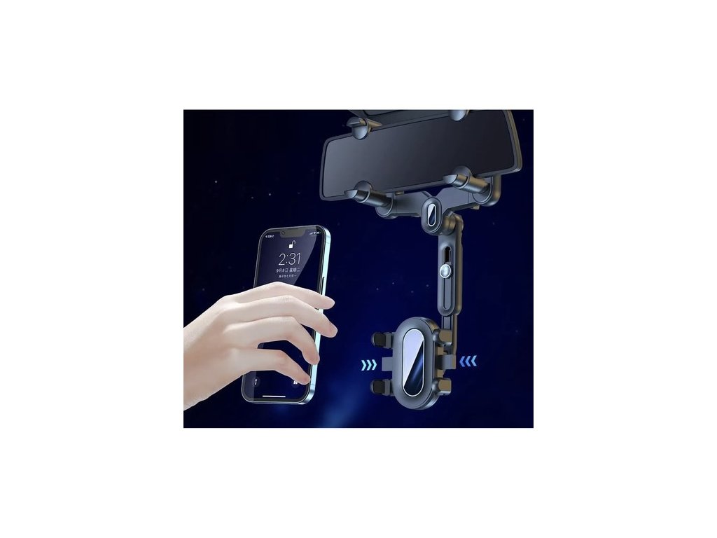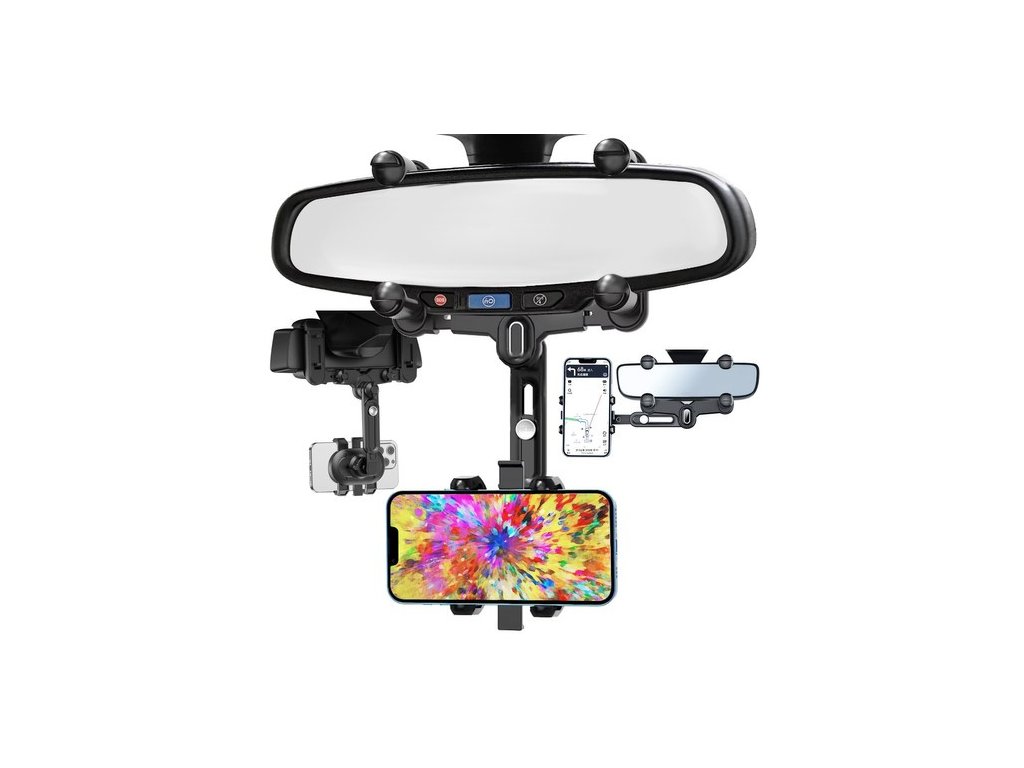 Otočný držák telefonu pro montáž na zrcátko v autě! Tento držák zajišťuje stabilní a bezpečné uchycení telefonu během jízdy díky pevnému držáku zpětného zrcátka a kvalitním materiálům. Je navržen tak, aby chránil zrcátko i telefon před poškrábáním a poškozením.