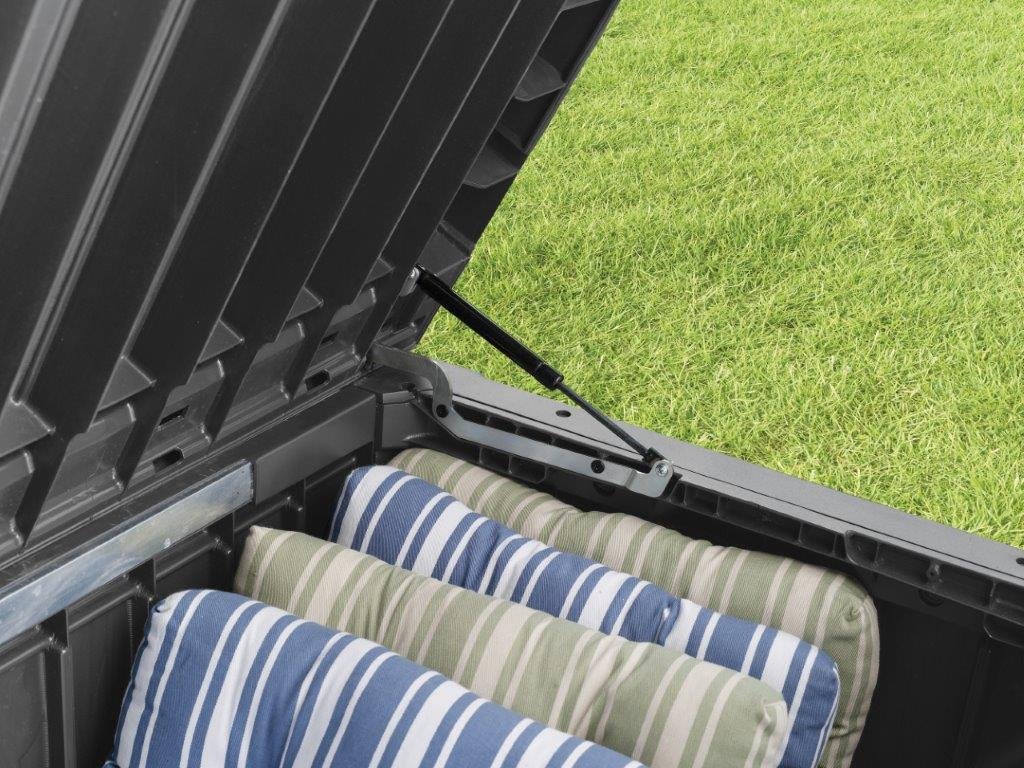 Zahradní box Rockwood značky Keter v grafitové barvě má objem 570 litrů. S přehledem tak do něj uložíte potřebné doplňky příjemného posezení, ať už jde o deky, polštáře nebo třeba lampiony. A navíc ho můžete využívat jako lavici na sezení, neboť jeho konstrukce unese 220 kg.