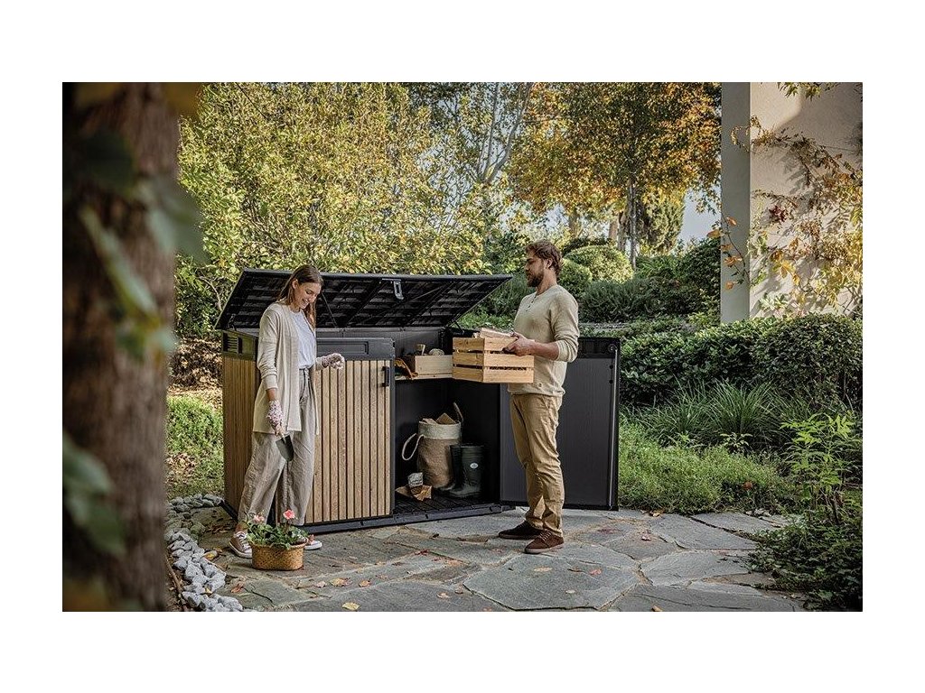 Překáží vám bazénová technologie a vybavení, zahradní či dílenské náčiní v garáži a potřebujete pro ně najít vhodné místo? Bezúdržbový zahradní box Keter Signature rozšíří úložný prostor na vaší zahradě, na dvoře, terase či v pergole. Využijete ho i k uskladnění 2 až 3 popelnic. Záleží na jejich velikosti. Box ochrání vaše věci před povětrnostními vlivy, jako je například déšť. Kromě toho jsou uložené předměty v bezpečí i před nečistotami.