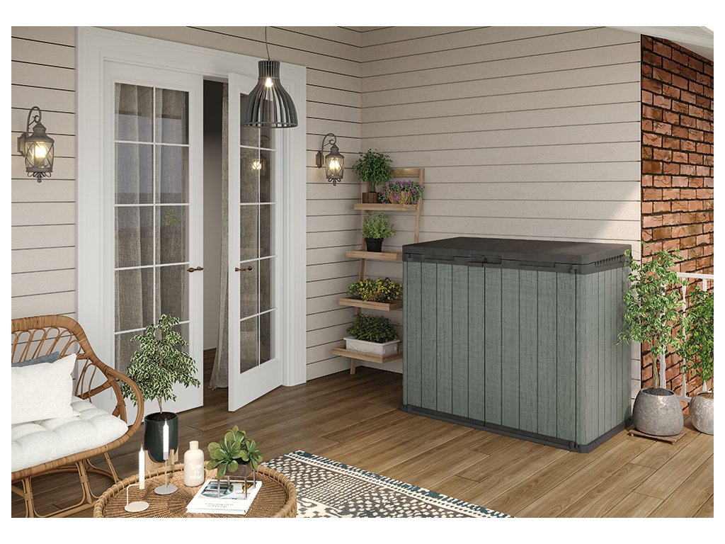 Najděte pro box ideální místo na zahradě. Díky struktuře, která připomíná dřevo, zapadne do každého prostředí. Uložené věci navíc můžete uzamknout uvnitř boxu pomocí visacího zámku (není součástí balení). Navíc je vybavený zabudovanou ventilací, která chrání věci před vlhkostí.
