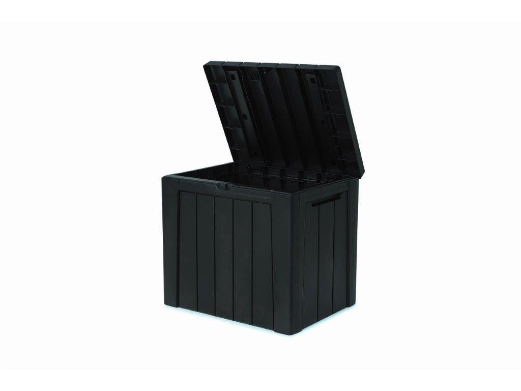 Krychlový zahradní box Keter Urban Storage v grafitovém provedení nabízí kapacitu 113 l, takže poslouží jako perfektní úložný prostor pro polštáře a ostatní doplňky vaší zahrady, terasy či pergoly. Zabudovaný podlahový panel chrání obsah skříně proti vodě, bahnu, prachu a dalším nečistotám. Složení skříně zvládnete během krátké chvíle a to bez použití jakéhokoliv nářadí.