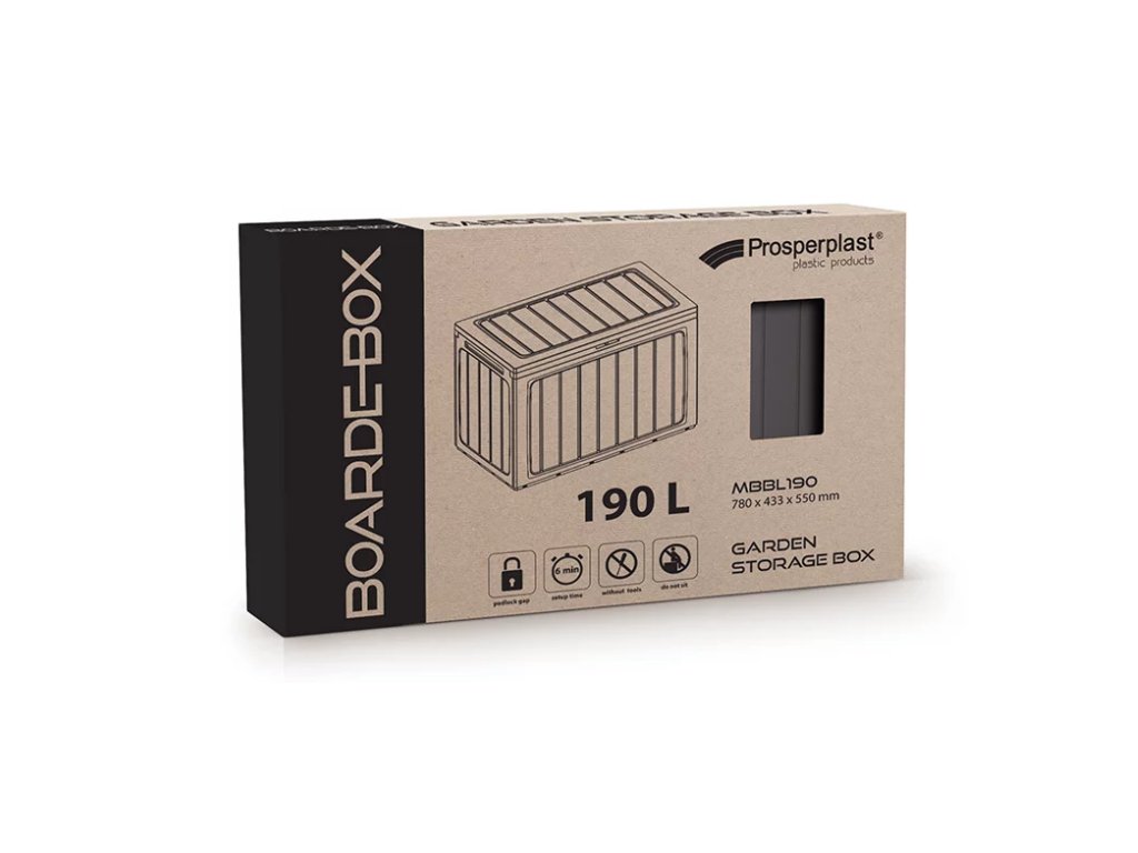 Sháníte praktické úložné místo na vaši zahradu, do pergoly nebo na balkon? Zahradní box Prosperplast BOARDEBOX o objemu 190 l vám poskytne mnoho místa pro uschování vašich věcí. Uložíte do něj své náčiní k pěstování, dílenské nářadí, venkovní hračky pro děti nebo třeba sportovní potřeby. V horní části se nachází víko, kterým uzavřete předměty do boxu. Madla na stranách vám usnadní manipulaci.