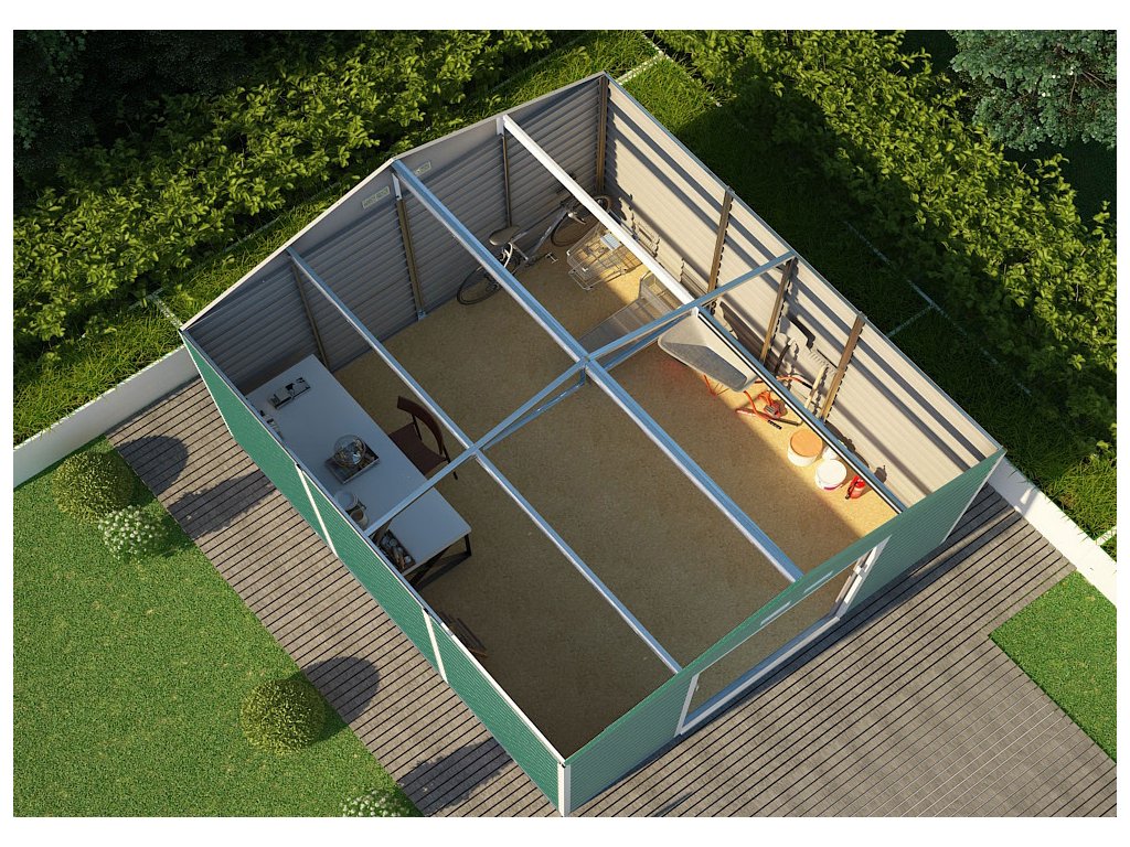 Na pevný pozinkovaný rám přimontujete ocelový, pozinkovaný plech s práškovým nástřikem, který je odolný vůči špatnému počasí. Součástí balení jsou dveřní úchyty, díky kterým domek snadno zajistíte proti nezvaným hostům.
