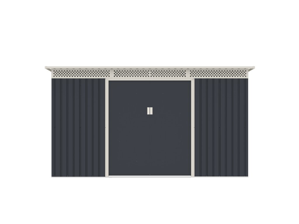 Zahradní domek GRAH 483 má dvoukřídlé dveře o celkové šířce 138 cm. Vstup do domku je tak opravdu pohodlný, i když nesete nebo vynášíte objemnější věc.