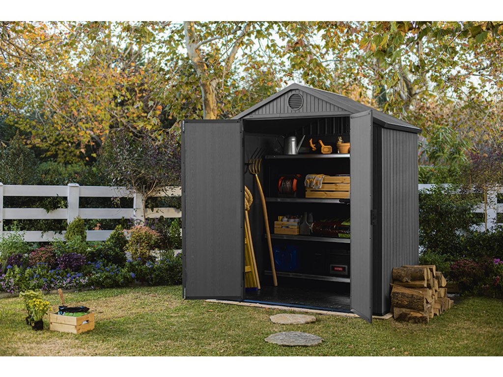 Máte zahradní náčiní všude po domě nebo po zahradě a ve vaší garáži již není místo? Zahradní domek Darwin 6 x 4 má optimální velikost a je velice snadné jej sestavit. Domek je vhodný pro skladování zahradního nářadí, ale také pro uchování sportovního náčiní, bazénové technologie a vybavení, dílenského nářadí i vybavení pro grilování, včetně rozměrnějších plynových grilů.