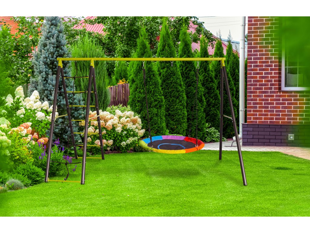 Houpací kruh G21 můžete mít od jara do podzimu venku, ať si děti užijí zábavu na čerstvém vzduchu. Pro opravdu bezpečné zavěšení houpacího hnízda je ideální stabilní a pevná kovová konstrukce G21, která obsahuje i žebřík a lezeckou síť pro zábavu větších dětí nebo možnost zavěšení dalších houpaček.