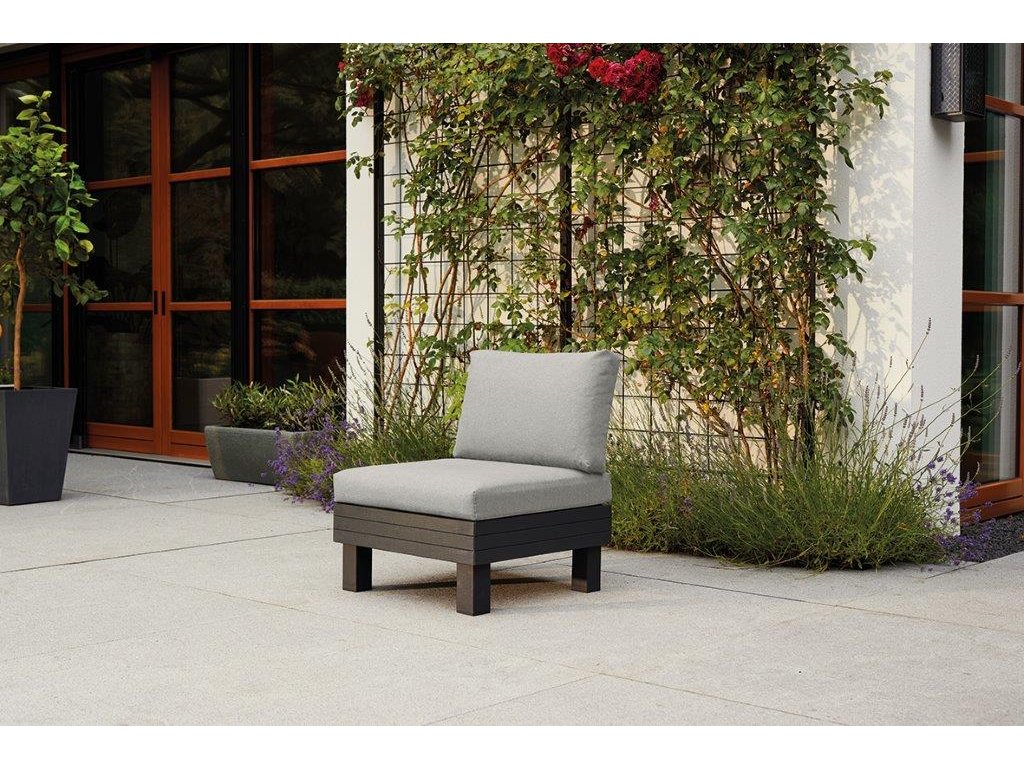 Stylové křeslo se strukturou, která připomíná vzhled dřeva, perfektně doplní design jakékoliv zahrady. Odolá nepříznivému počasí a UV záření, takže jeho barva jen tak nevybledne. Kromě toho se vyrábí ze 100% recyklovaného plastu. Je tedy šetrnější k přírodnímu prostředí.